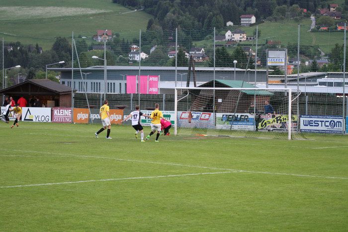 Die größte Chance bis dahin in diesem Spiel vergab der Gnaser Andreas Lackner in der 34. Minute. Kniewallner brachte von der rechten Seite den Ball in den Torraum, ein Verteidiger patzte, dahinter stand Lackner, der wahrscheinlich zu überrascht, aus kurzer Distanz den Ball an der rechten Stange vorbeischob.