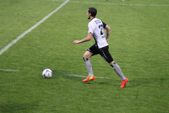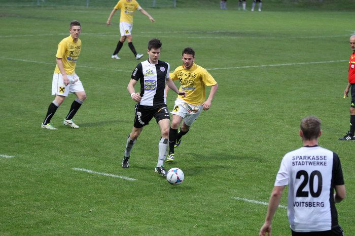 Wenig später hieß es 1:1. Ein Voitsberger Verteidiger konnte sich nicht schnell zu einem Abspiel entschließen, Matthias Schadler nahm ihm den Ball ab und lief in Richtung Tor, überspielte noch den herausgeeilten Hiebler und schoss aus spitzem Winkel zum 1:1 ein.