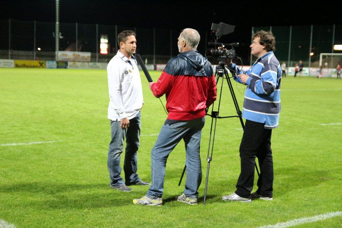 Gnas-Trainer Puntigam beim Interview vor der Kamera...