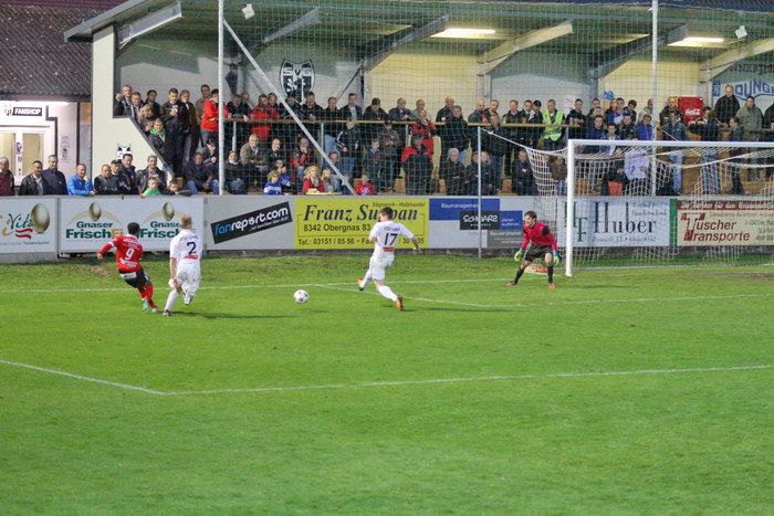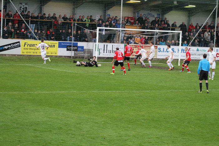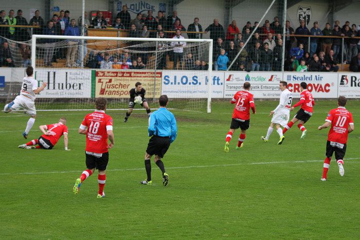 Daniel Haas (Nr.9) schießt, Lechner wehrt ab, Kniewallner verfehlt im Nachschuss das Tor (81.).
