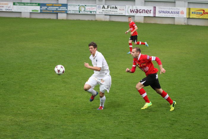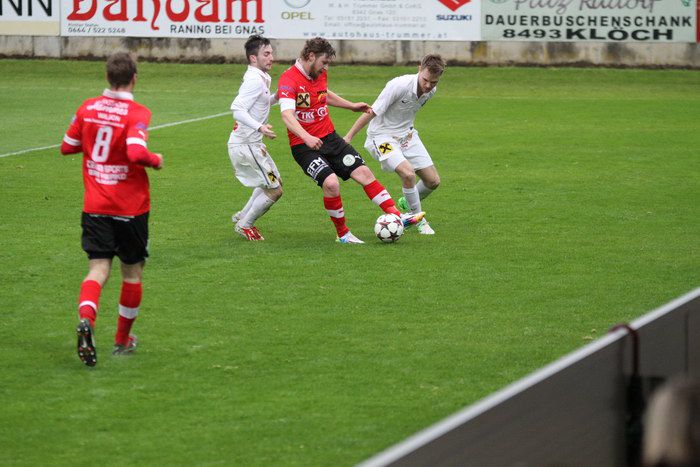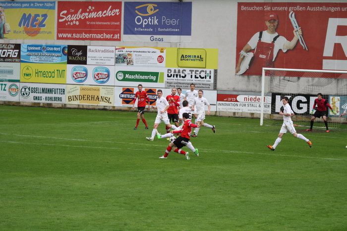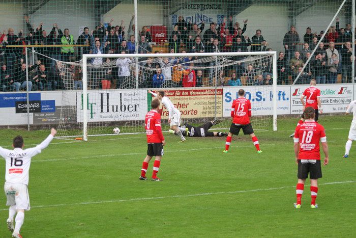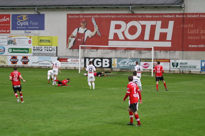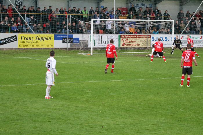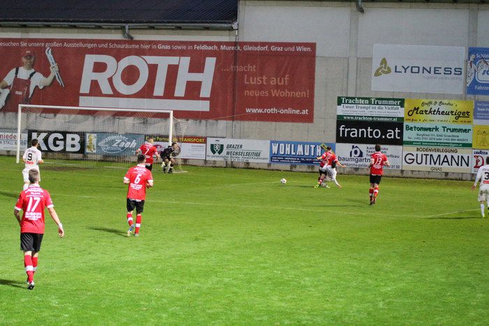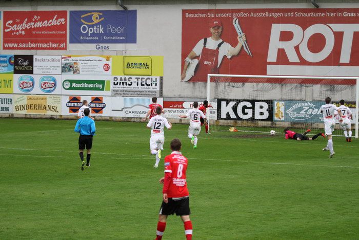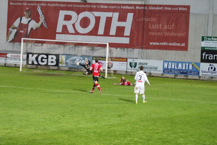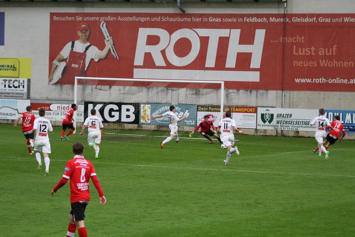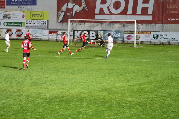 Zwei Minuten später traf Andreas Lackner mit einem Schuss aus halblinker Position die rechte Torstange, den abprallenden Ball übernahm Stefan Klenner direkt und Raphael Kniewallner, der vor der Torlinie stand, drückte den Ball unter großem Jubel der Fans zum 3:1 ein (37.).