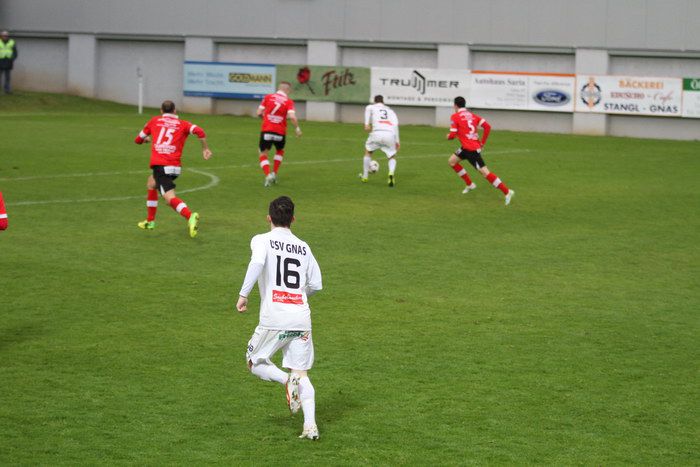 In der 30. Minute kamen die Gnaser zum 1:1-Ausgleich. Kapitän Christoph Haas passte zu Raphael Kniewallner, dieser sprintete über die rechte Seite in den Strafraum und mit einem Flachschuss gab Kniewallner Torhüter Gernot Lechner das Nachsehen. Ein schöner Treffer des flinken, jungen Gnaser Goalgetters. In der 34. Minute kam Kniewallner abermals zum Abschluss, diesmal konnte Lechner das Leder zur Ecke abwehren.