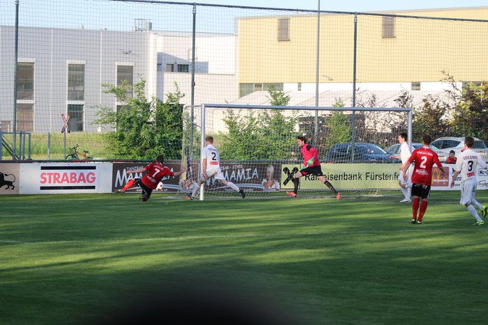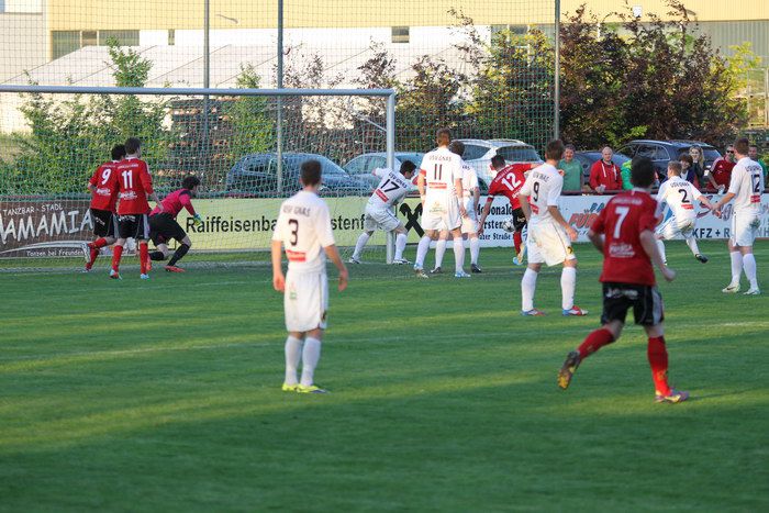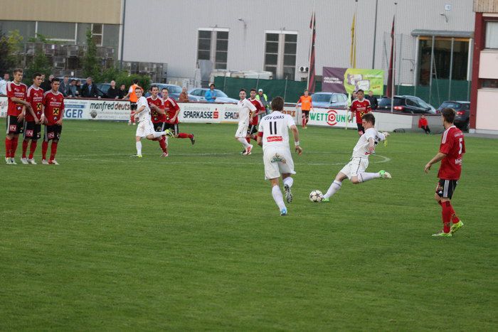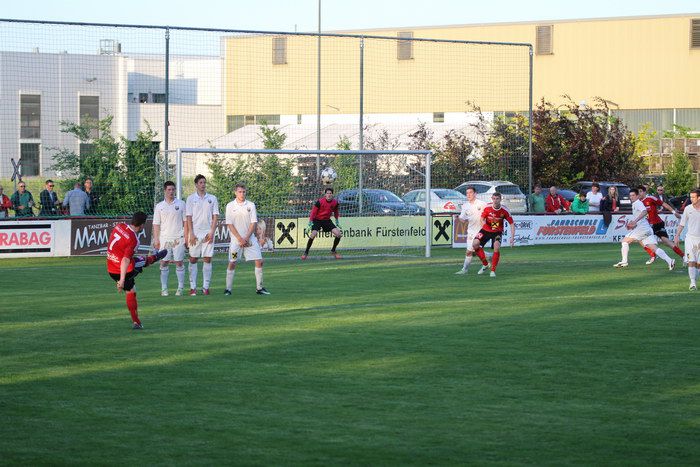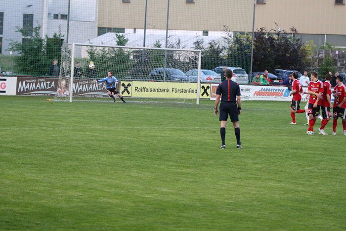 Bei einem Freistoß von Schlatte von der linken Seite verpasste Fürstenfeld-Goalgetter Michael Wallner den Ball nur knapp, der daneben stehende Mitteregger setzte den Ball am rechten Pfosten vorbei ins Torout (35.).