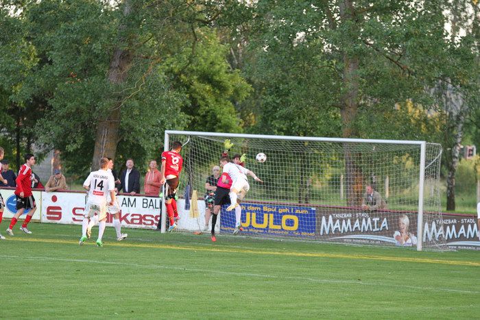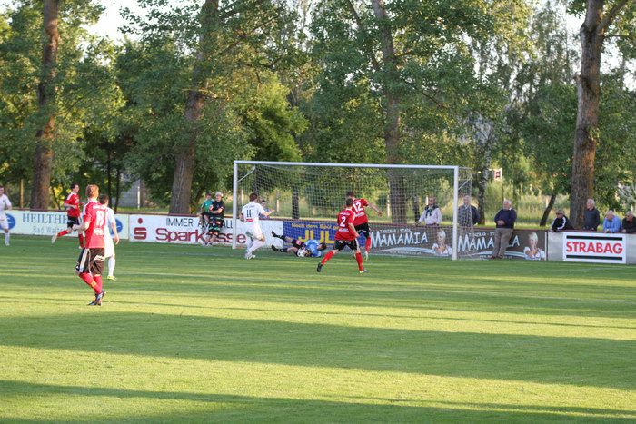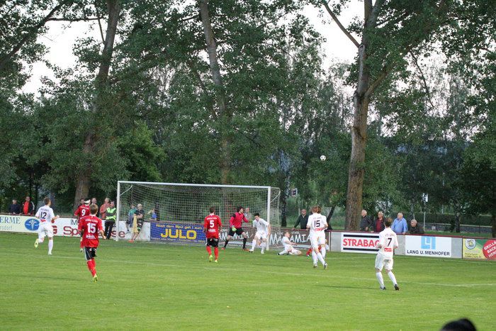 Markus Wruntschko (3.v.re) köpfelt einen Freistoß von Schlatte am Tor vorbei (46.).