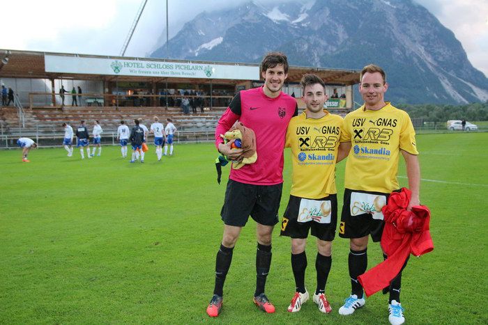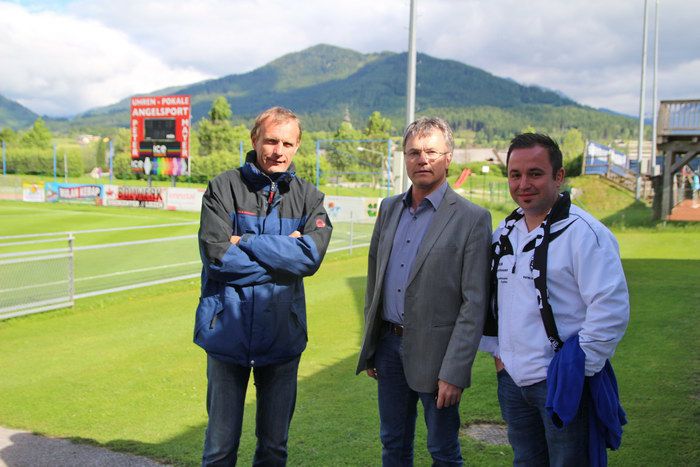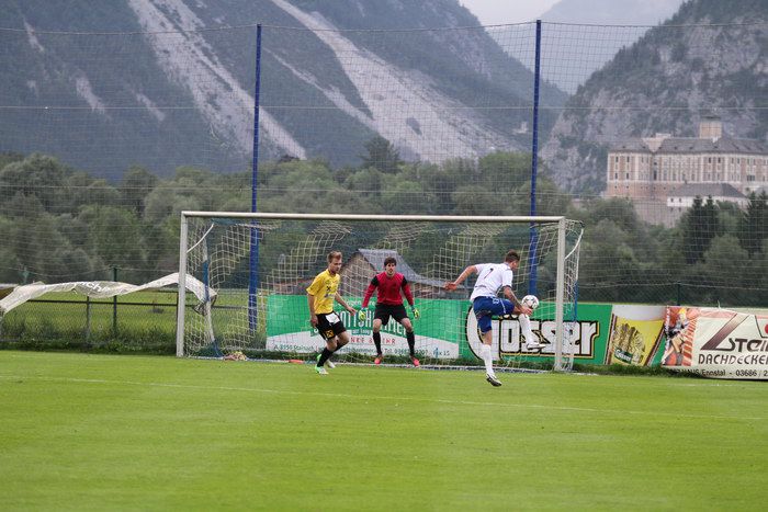 Vor der Kulisse des Grimming: Torhüter Roth, der sich einige Male auszeichnen konnte, der zweifache Torschütze Andreas Lackner und Alfred Geigl feierte sein Comeback.
