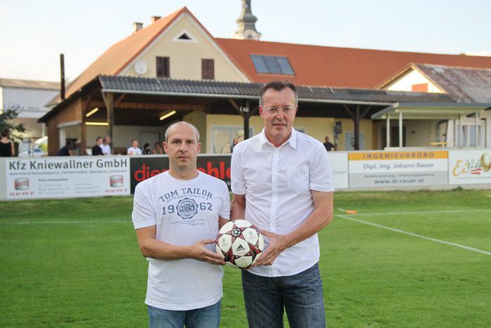 Die Firma MEZ - Mein Einkaufszentrum (rechts Chef Ewald Roth, mit Helmut Trummer), war diesmal Match- und Matchballsponsor, das Dorfgasthaus Amtmann, Obergnas, spendete einen weiteren Matchball.