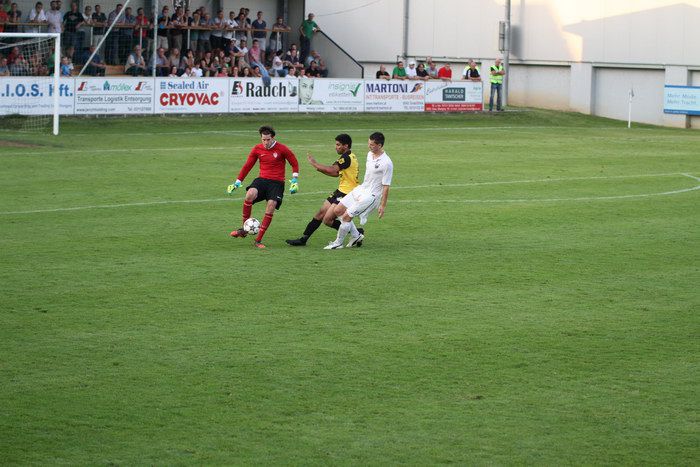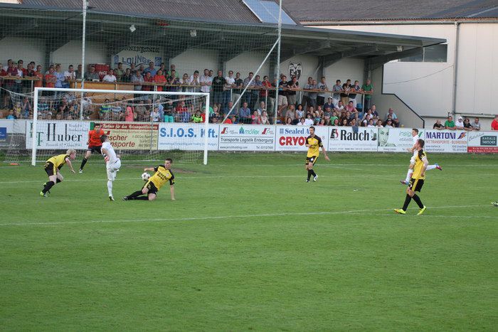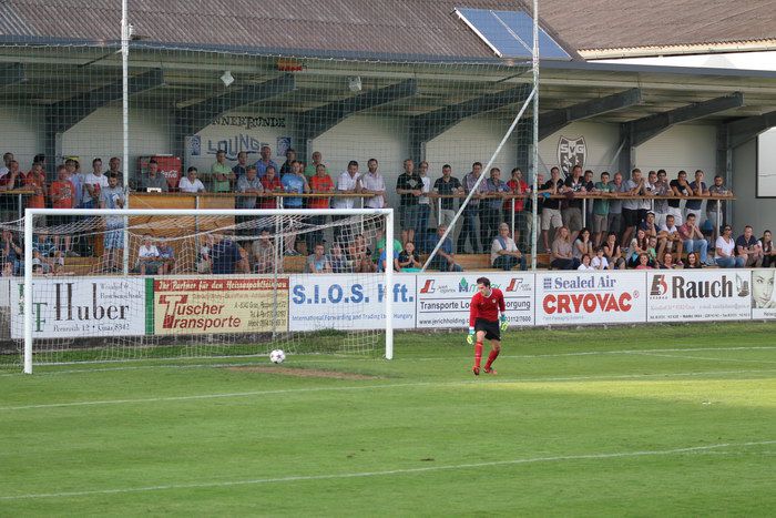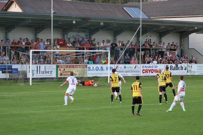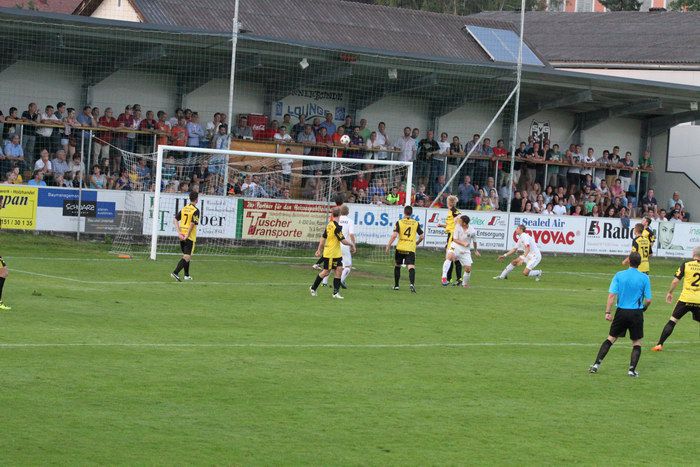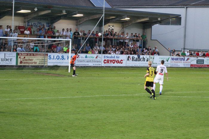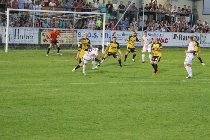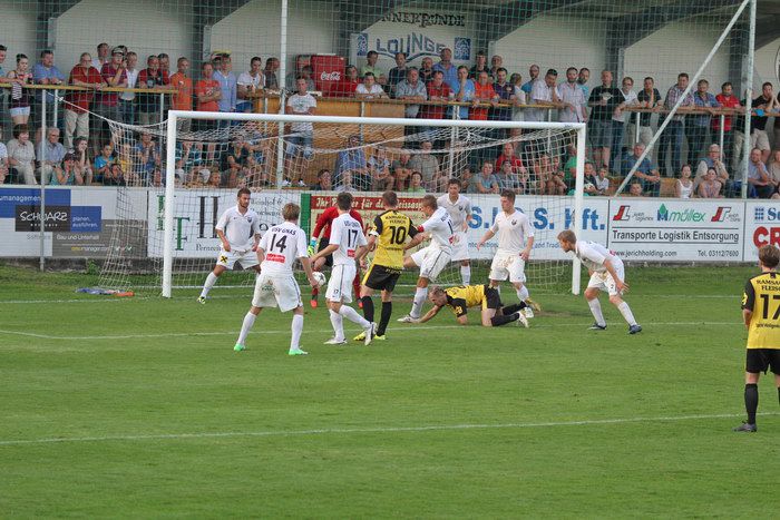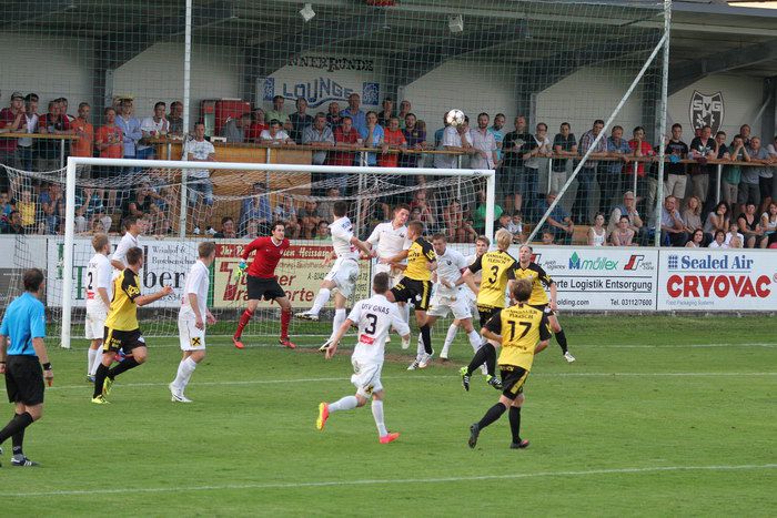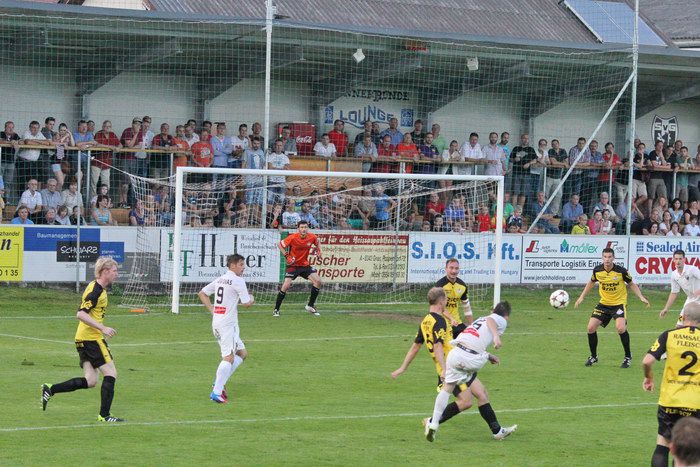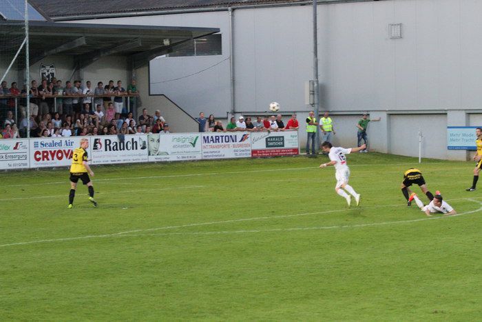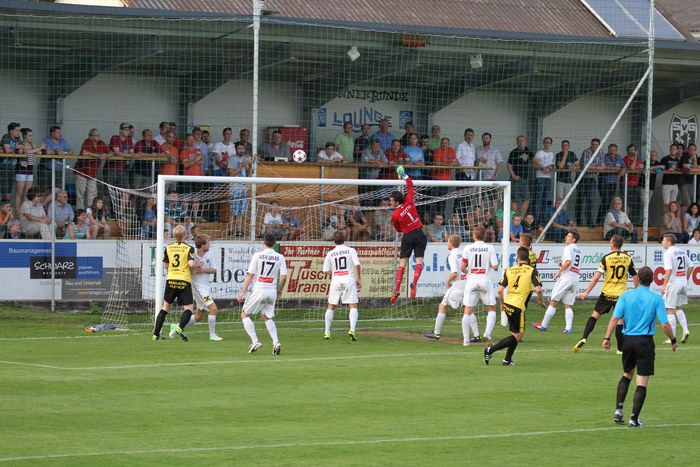Martin Six trifft aus einem Eckball in der 5. Minute die Oberkante der Latte.