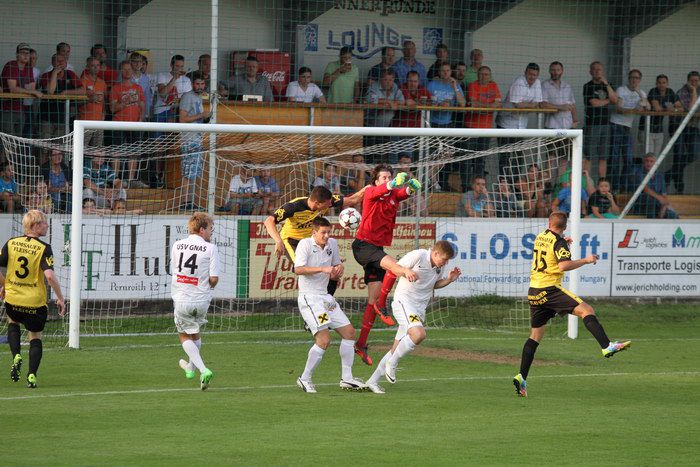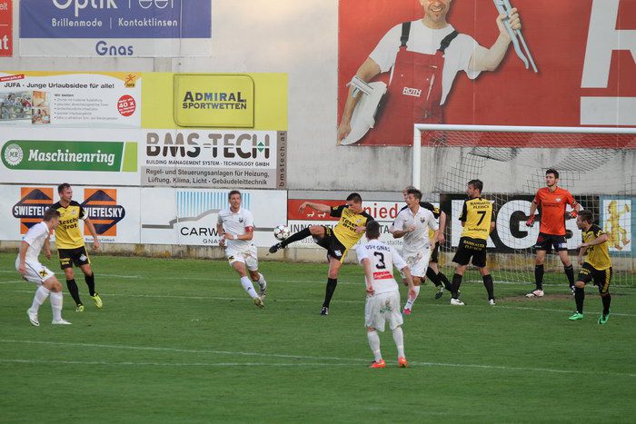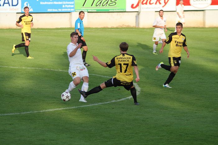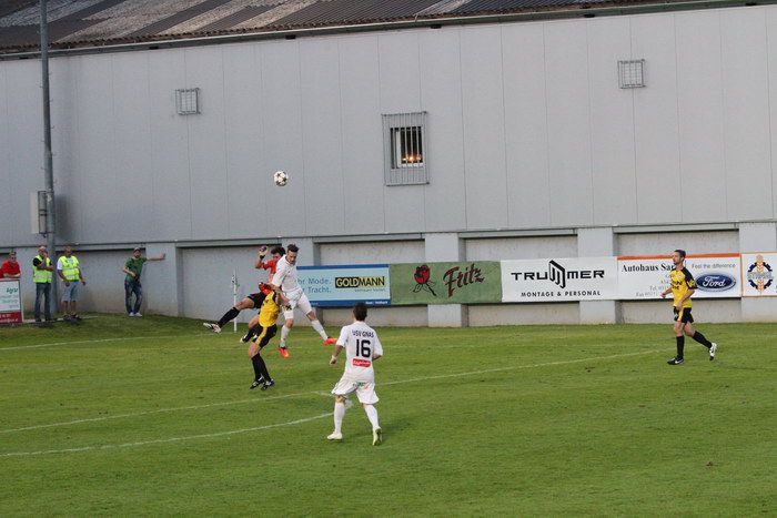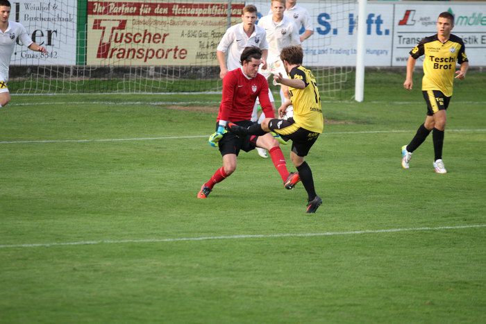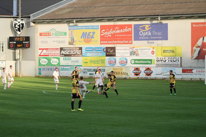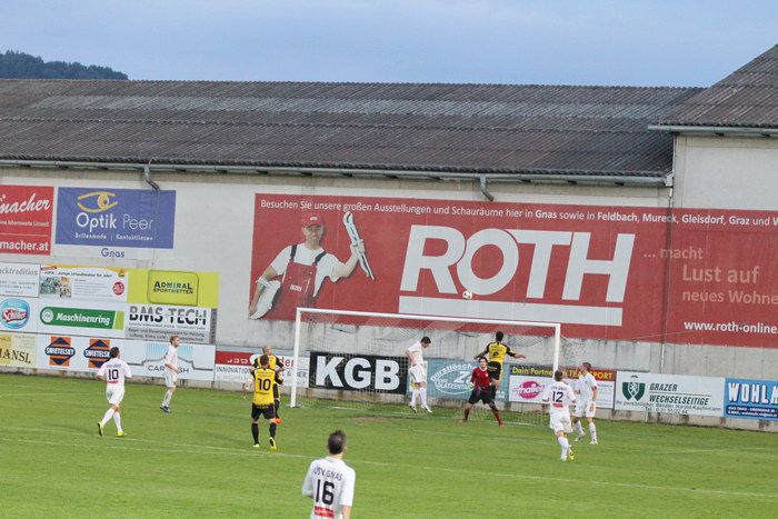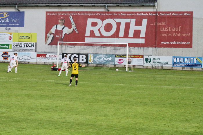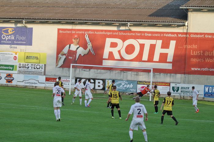 In der 5. Minute trafen die Gäste aus einem Eckball durch Martin Six die Oberkante der Querlatte. Wenig später war Gnas-Goalie Roth bei einem Distanzschuss von Mohsenzada auf dem Posten. Bei einem Freistoß von Six verschätzte sich Gnas-Goalie Roth, der nachfolgende Schuss von Starchl ging am Tor vorbei (9.). Kurz darauf verfehlte auch ein Mohsenzada-Schuss knapp das Gnaser Tor (10.).