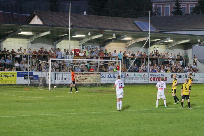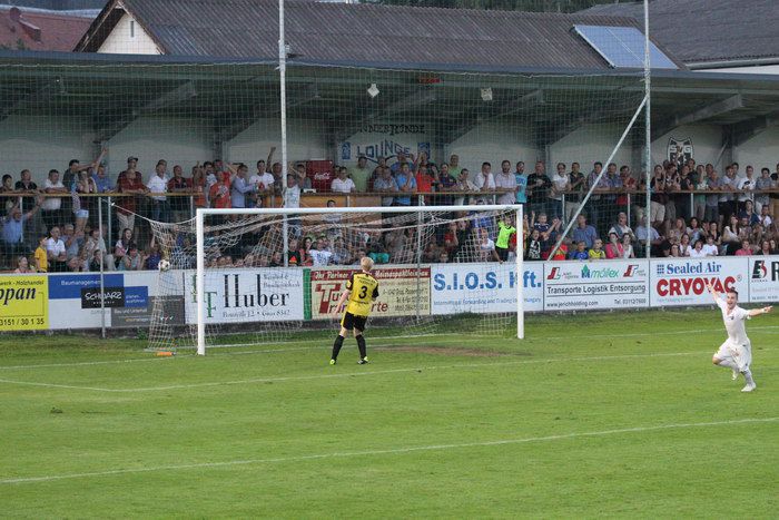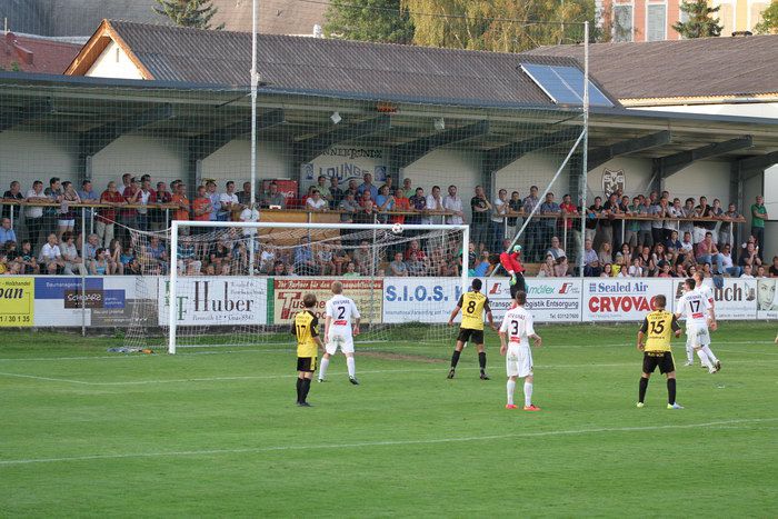 ...der Freistoßball von M. Schadler wird von einem Gästespieler quergelegt, Lackner kommt an den Ball und knallt aus rund 20 m ...