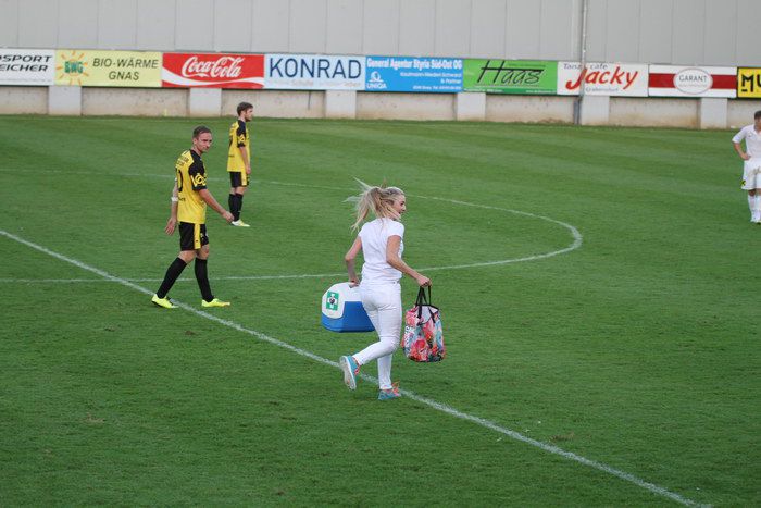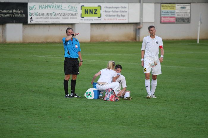 Nach einem Foul von Mohsenzada an C. Schadler kommt die neue Gnaser Masseurin Helga Reicher unter Applaus des Publikums zum ersten Einsatz...
