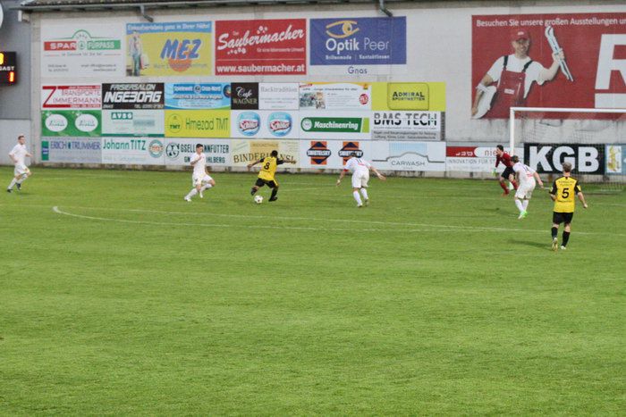 Ein Schuss von Andreas Lackner traf Bojan Monar im Strafraum an der Hand, die Gnaser reklamierten Elfmeter, doch SR Kislick ließ weiterspielen. Einen weiten Freistoßball von Matthias Schadler verlängerte Monar übers eigene Tor. Nach dem folgenden Eckball konnte Goalie Troschl einen M.Schadler-Schuss halten. Ein wuchtiger Distanzschuss von Matthias Schadler verfehlte das Gästetor nur knapp (54.). Eine M.Schadler-Flanke von der linken Seite setzte Daniel Haas per Kopf an die Querlatte, den abspringenden Ball köpfelte C.Schadler abermals aufs Tor, diesmal konnte Troschl den Ball ohne Mühe halten (60.). Die Gnaser kämpften und wollten unbedingt den Ausgleich erzwingen. Ein Lackner-Schuss an der Strafraumgrenze ging rechts am Tor vorbei (65.).