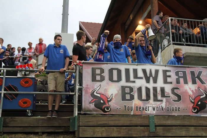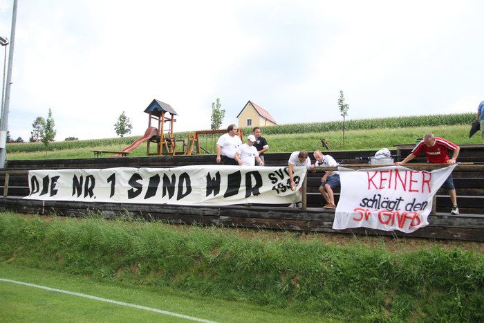 Gnaser Fans entrollen schon vor dem Spiel die Transparente. Mutig, am Ende sollten sie aber recht haben...