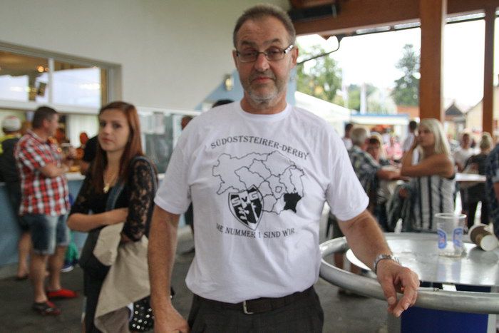 Ein Gnaser Fan trägt das Leiberl vom Südoststeirer-Derby.