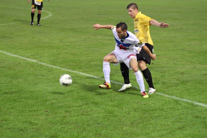 Gnas-Verteidiger Stefan Klenner foult Christoph Ulrich.