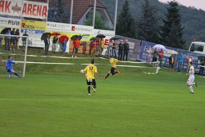 Pausenstand 1:1. Die in der Pause geplante Flugvorführung der Styrian Wings konnte aufgrund des schlechten Wetters nicht durchgeführt werden.