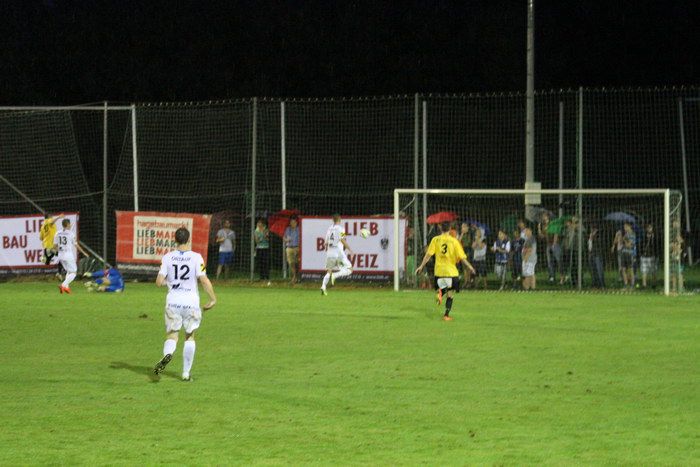 Ein kurzes Lebenszeichen von den Gnasern gab es erstmals in der 21. Minute, als Matthias Schadler mit einem wuchtigen Distanzschuss das Tor von Reiter knapp verfehlte. In der 29. Minute nahm Marko Guja am 16er Maß, doch der Ball flog hoch übers Tor von Roth in den nächtlichen Himmel. Drei Minuten später fiel der verdiente Führungstreffer für die Gastgeber. Kobald tankte sich auf der linken Seite durch und legte quer zu Sundl. Der Neuzugang der St. Annerer haut gleich drauf, traf aber einen Gnaser Spieler. Der abgefälschte Ball kam zu Marko Guja und der Goalgetter der Heimischen verlängerte per Kopf zum 1:0 in die Maschen.