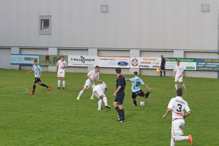 Die Gäste aus Voitsberg kamen in der 3. Minute nach einem Foul an Gernot Sauer zu einem Freistoß aus rund 18 m. Anel Kocijan schoss links am Gnaser Tor vorbei.