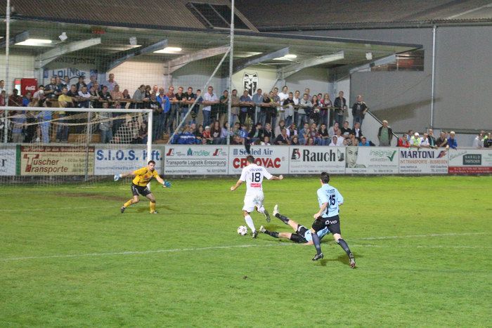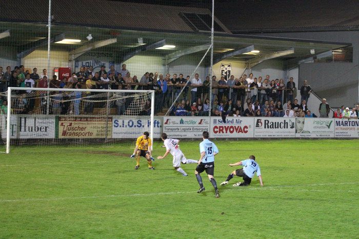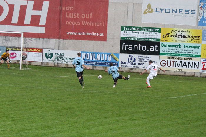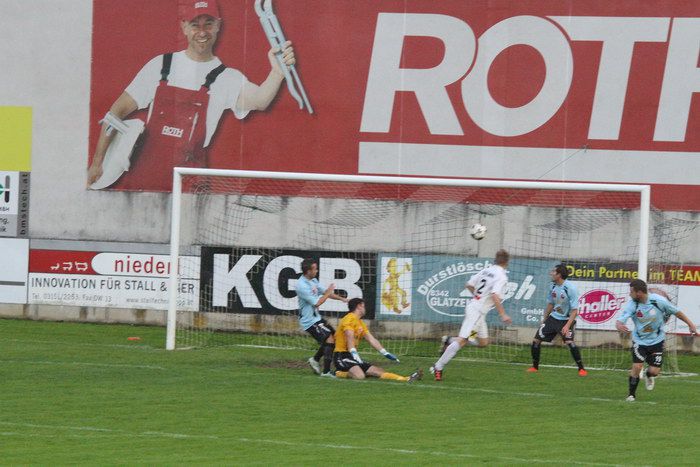Nach schönem Pass von Stefan Strohmaier setzte sich Raphael Kniewallner im Laufduell mit Jürgen Walch auf der rechten Seite durch und passte scharf zur Mitte. Daniel Haas verpasste die gute Möglichkeit und kam nicht an den Ball (13.).