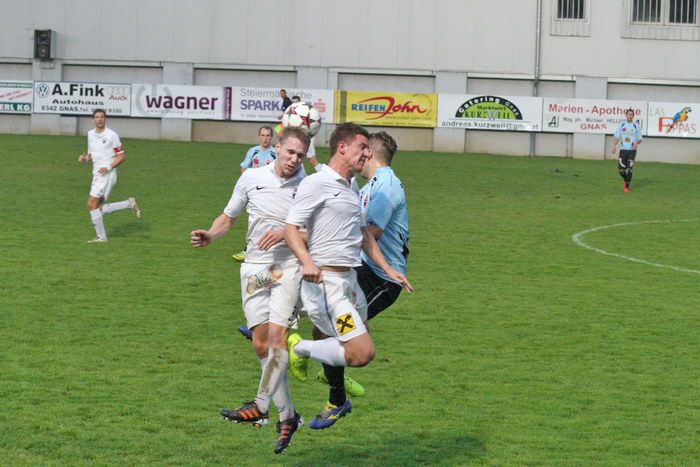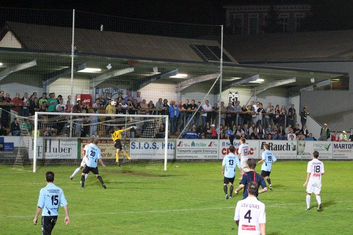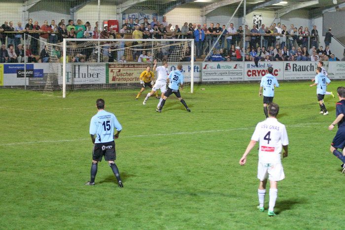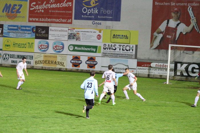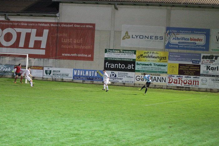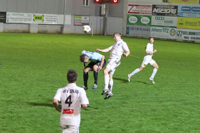 In der 6. Minute konnten die Gnaser erstmals an diesem Abend jubeln. Kniewallner holte einen Eckball heraus, Matthias Schadler hob den Ball in den Strafraum, Verteidiger Stefan Klenner kam ungehindert zum Kopfball und schon stand es 1:0 für Gnas. Ein früher Treffer für die Hausherren.