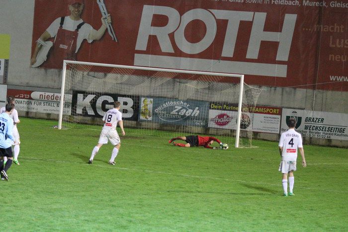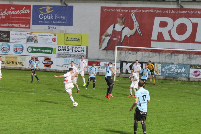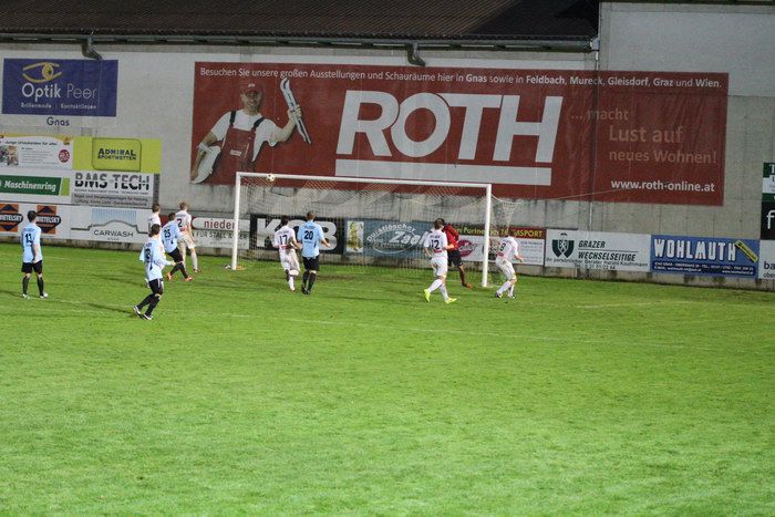 Einen Flachschuss von Martin Hiden aus 16 m konnte Gnas-Tormann Roth halten (80.). Im Gegenzug wurde Kniewallner von Torhüter Triebl außerhalb des Strafraumes gefoult. Triebl kam mit der gelben Karte davon. Der von Matthias Schadler getretende Freistoßball berührte die Oberkante der Querlatte, bevor sich das Leder ins Torout senkte (81.).