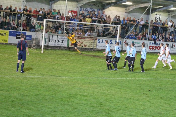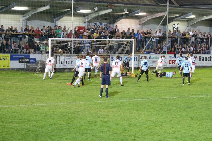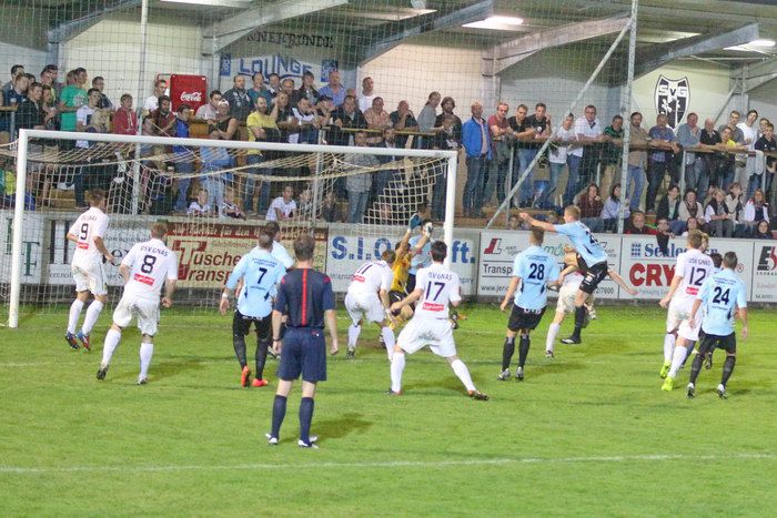 Nach Ecke von der rechten Seite durch Matthias Schadler köpfelt Stefan Klenner (6.v.re, etwas verdeckt)zum 2:0 ein..