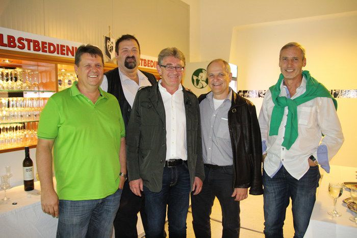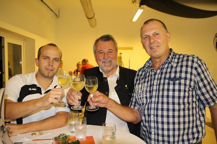 StFV-Ehrenpräsident Franz Wolf (mitte) mit Gnas-Präsident Schwarz (rechts) und Gnas-Kassier Fritz Bernhard stoßen auf den Sieg an.