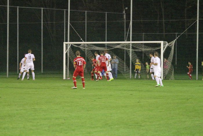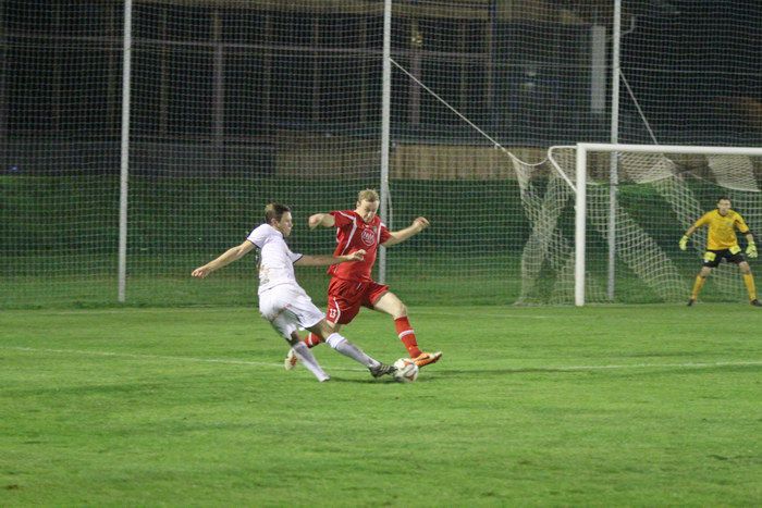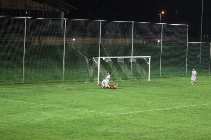 Im Gegenzug wäre beinahe der Ausgleichstreffer gefallen. Traxler setzte auf der rechten Seite Mandl ein, der Kapitän schoss gleich aufs Tor, zum Glück verfehlte Wohlmuth die Kugel, so zog der Ball knapp an der zweiten Stange vorbei ins Torout.