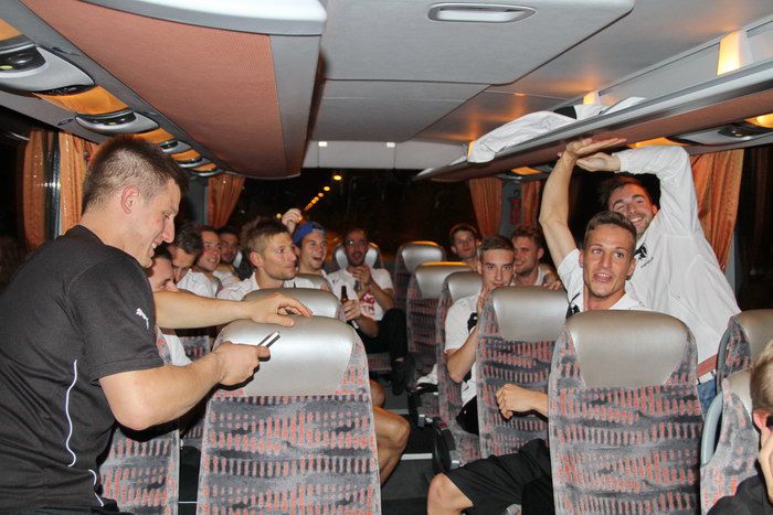 Im Bus wurde gesungen und gefeiert.