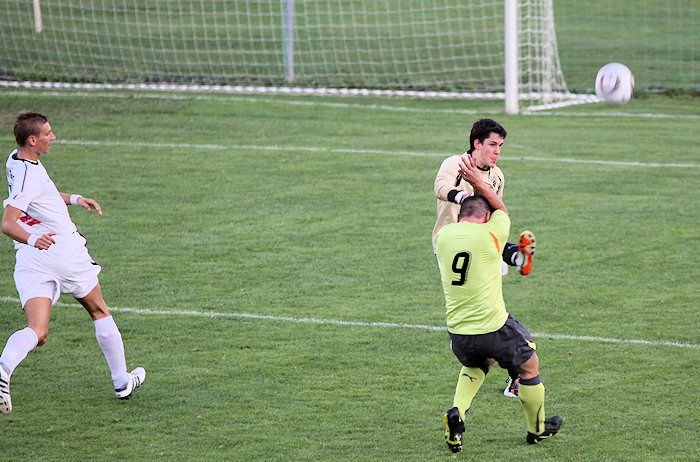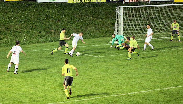 Christian Schadler vergibt nach Outeinwurf v. M.Schadler diese Riesenchance. Torhüter Suschetz wehrt seinen Schuss ab (23.).