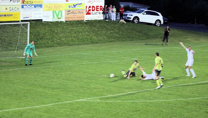 Von diesem Zeitpunkt an waren die Gnaser verunsichert und die Hausherren witterten die Chance auf den Ausgleich. Und als in der 70. Minute bei einem hohen Ball im Gnaser Strafraum die Gnaser Christian Schadler und Torhüter Roth, zusammen mit Thomas List in einem Luftkampf verwickelt waren, stürzte der hinter Roth stehende List zu Boden. Roth konnte per Fußabwehr noch zur Ecke retten. Die Hausherren reklamierten ein Foulvergehen von Roth an List und damit Strafstoß. SR Duschek entschied sich für Eckball.