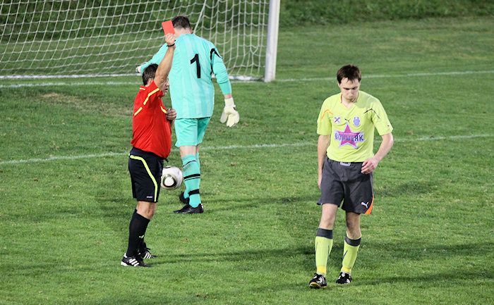 Bald darauf war es aber so weit. Kniewallner wurde im Strafraum von Ortauf zu Fall gebracht. Elfmeter für Gnas und die Rote Karte für Ortauf. Den Elfmeter verwandelte Daniel Haas in sicherer Manier zum 1:1. Ein wichtiges Tor für die Gnaser so kurz vor dem Pausenpfiff.
