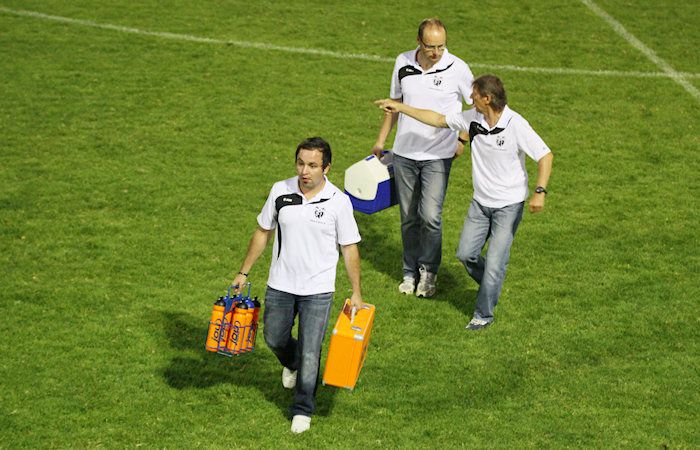 Gnas-Trainer Bez und Koordinator Friedl sowie SL Trummer auf dem Weg in die Kabine.