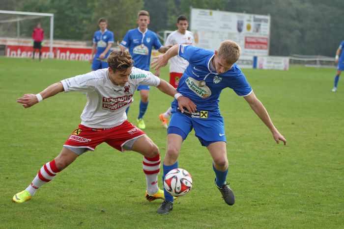 Thomas Suppan kommt zur Pause für T. Puntigam ins Spiel. Suppan (hinten) im Duell mit Ostermann.