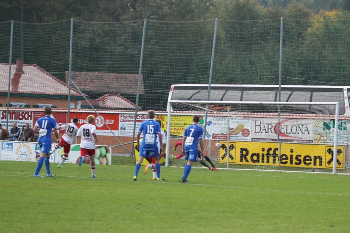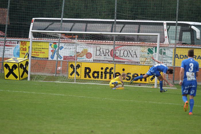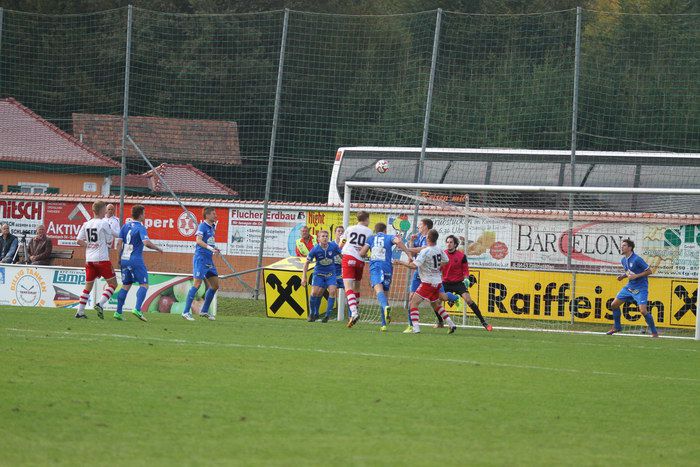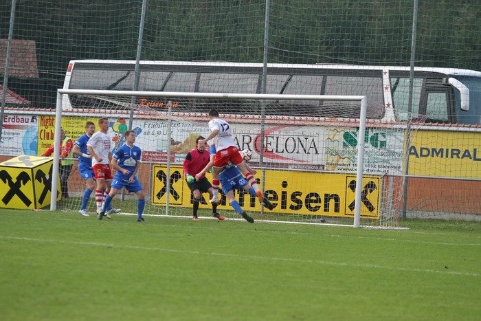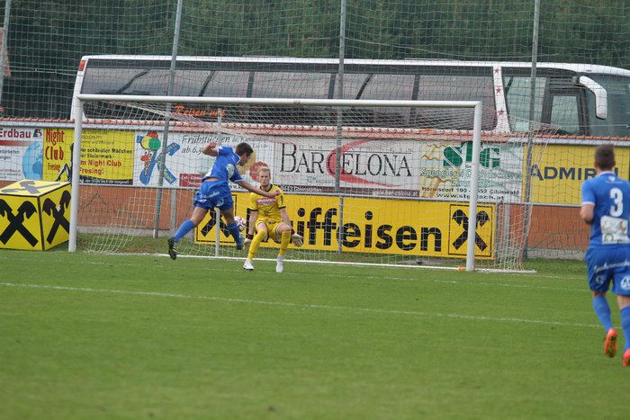 Mit diesem Tor war aber vorerst das Pulver bei den Gnasern verschossen. Die Gäste erholten sich bald von diesem Schock und wurden stärker. Christoph Haas lenkte per Kopf einen Reinegger-Kopfball nach einem Outeinwurf übers eigene Tor (34.). Auch beim nachfolgenden Eckball war wieder Reinegger dran, er köpfelte das Leder kanpp übers Gehäuse von Roth.