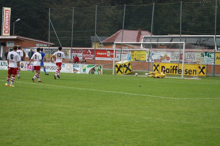 41. Minute: Gnas-Verteidiger Stefan Klenner ging nach einem Freistoß von Matthias Schadler nach einem Duell im Strafraum zu Boden...SR Hofgartner zeigte auf den Elferpunkt. Daniel Haas ließ sich diese Gelegenheit nicht entgehen und verwandelte sicher zum 2:1 für Gnas.