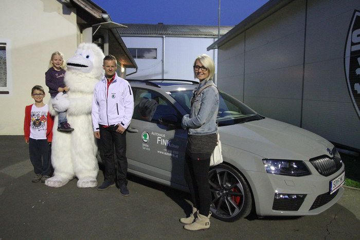Match- und Matchballsponsor Albert und Anita Fink vom Autohaus Fink mit einem neuen Skoda und Yeti.
