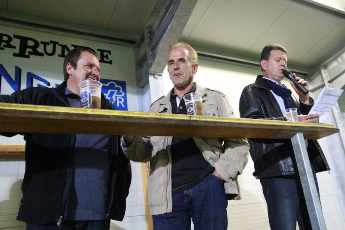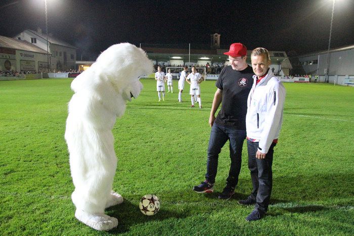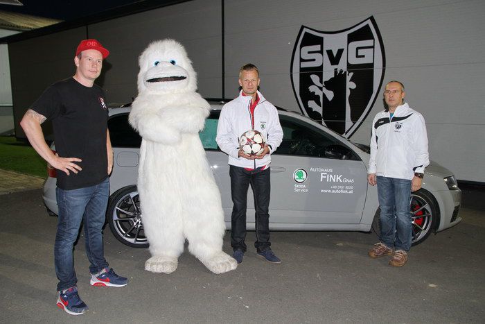 Den Ehrenanstoß führte der Yeti mit den beiden Sponsoren, Feldgitscher und Fink durch.
