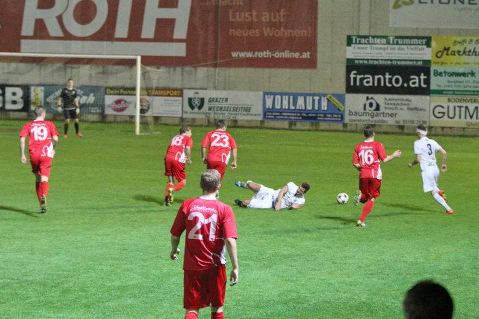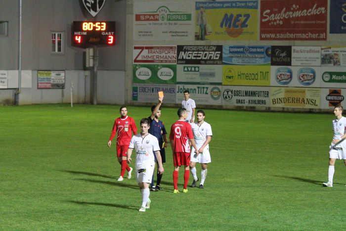 In der 79. Minute wurde Stefan Strohmaier etwas außerhalb des Strafraumes von Kapitän Mark Schranz gefoult. Den Freistoß setzte Matthias Schadler an die linke Stange, von dort prallte das Leder aufs Spielfeld zurück. Wenig später wurde der Leobner Erik Kahr nach einem Foulspiel mit der Ampelkarte vom Feld geschickt (82.).