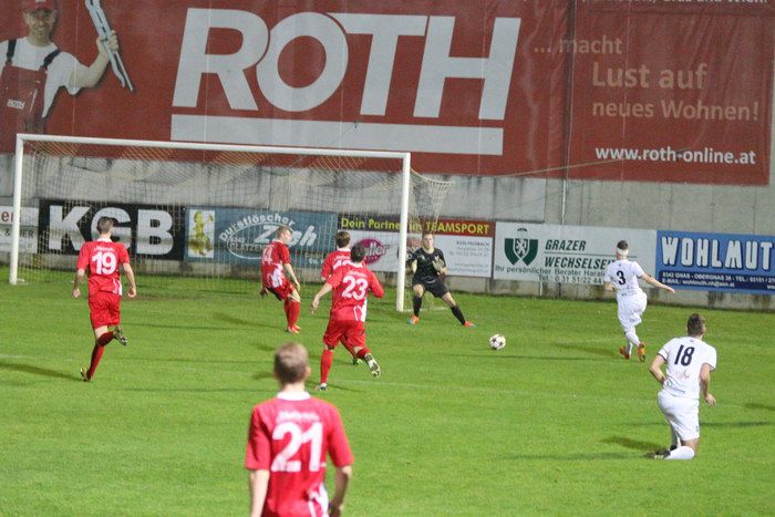 Und acht Minuten später zappelte das Leder abermals im Kasten der Gäste. Nach einem Freistoß von Matthias Schadler beging Marcel Steiner im Strafraum ein Foul an Gnas-Innenverteidiger Christoph Haas, Elfmeter für die Hausherren. Daniel Haas verwertete den Strafstoß sicher zum 4:3 in der 58. Minute. Damit war das Spiel zugunsten der Hausherren gedreht.