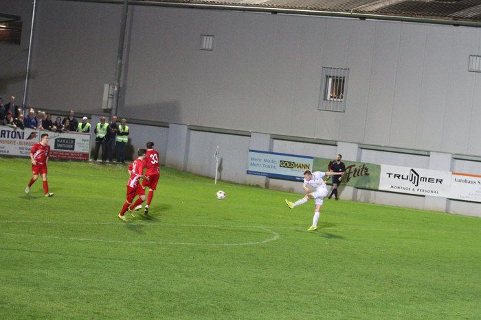 Stefan Klenner schießt nach einem M. Schadler-Freistoß aus 16 m wuchtig übers Tor von Berghofer (73.).