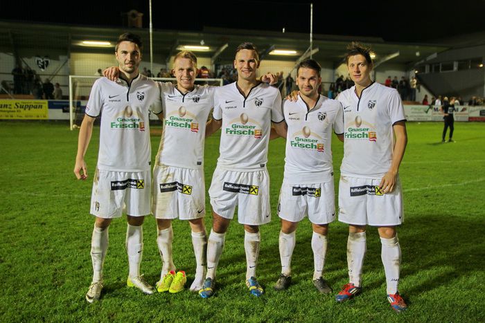 Tore: O.Fink (8.), Klenner (40.), Strohmaier (50.), D. Haas (58. Elfer), Wohlmuth (84.) bzw. Briza (19. Elfer, 43.), Unterkircher (26.).
