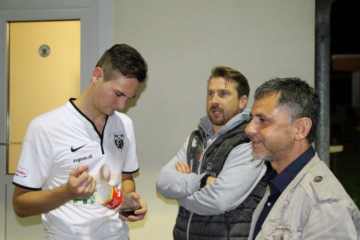 Stefan Strohmaier traf nach dem Spiel seine früheren Trainer Gregor Pötscher und Markus Vögl.