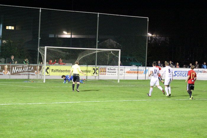 Die erste Möglichkeit der Gäste führte auch zum Führungstreffer in der 19. Minute. Einen Freistoß aus der eigenen Hälfte durch Christoph Haas verlängerte Andreas Lackner per Kopf, es folgte ein Stanglpass von Daniel Haas und Raphael Kniewallner beförderte das Leder im Rutschen zum 1:0 ins Netz.