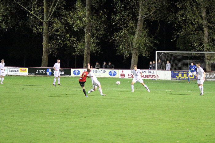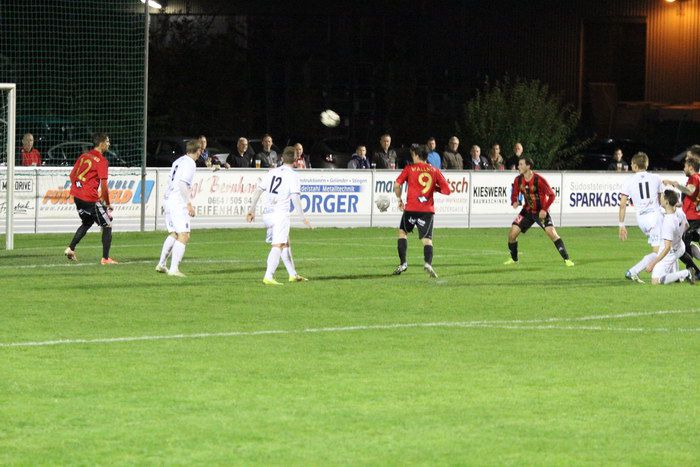 Nach einem Freistoß kommt Glaser (ganz rechts) zum Schuss. Der Ball zieht über die Querlatte ins Torout (31.).