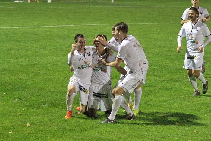 ..und wird von seinen Kollegen gefeiert (ganz links der Torschütze).