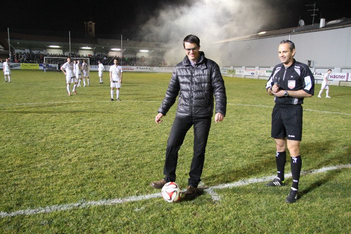 Christoph Liebmann nimmt den Ehrenanstoß vor.