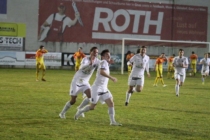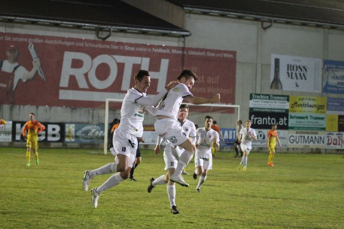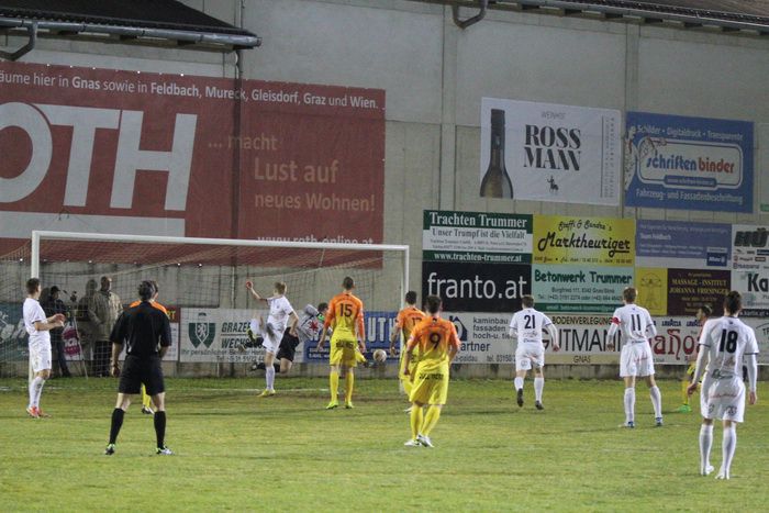In der 24. Minute gab es nach einem Foul von Marko Balazic an Stefan Strohmaier Freistoß für Gnas. Andreas Lackner zirkelte den Ball von der linken Seite, aus spitzem Winkel, direkt via rechter Innenstange zum 1:1 ins Netz. Begreiflicher Jubel bei den Heimischen und den vielen Fans. Nach Strohmaier-Pass beförderte Lackner das Leder übers Tor von Reiter (26.).