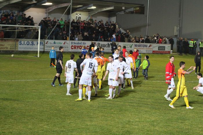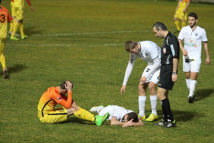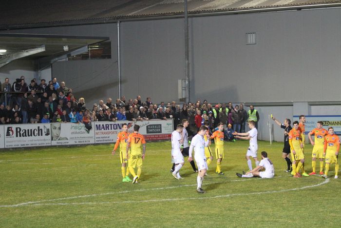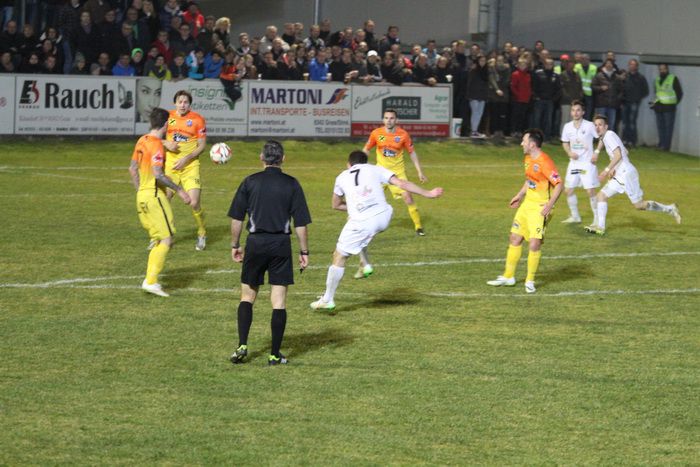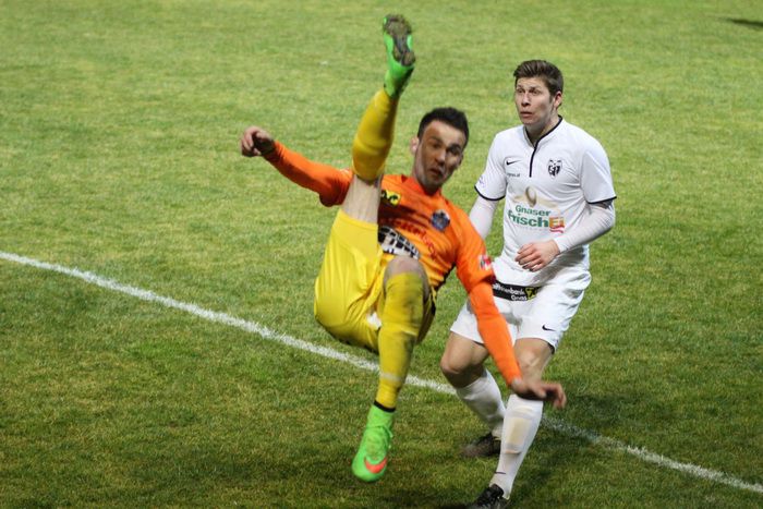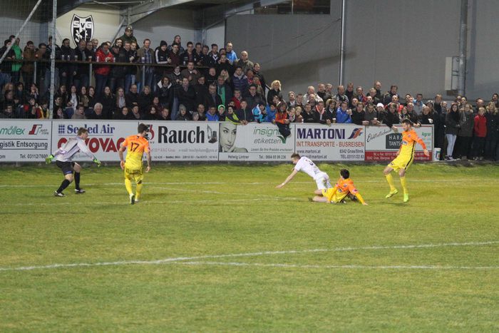 Bereits in der 2. Minute muss Gnas-Kapitän Haas nach einem Schuss von List auf der Torlinie retten.