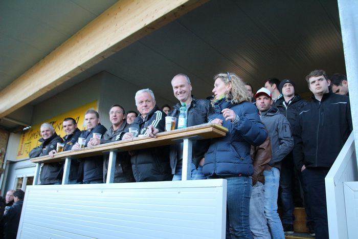 Die kleine Stehplatztribüne mit den Fans.