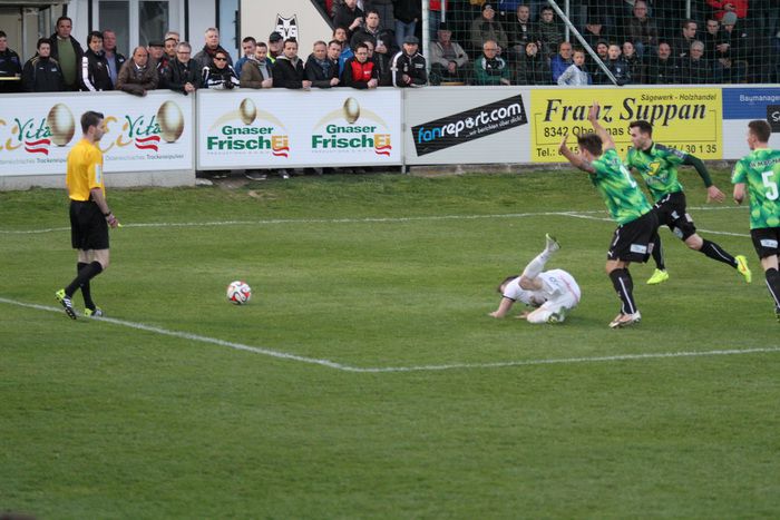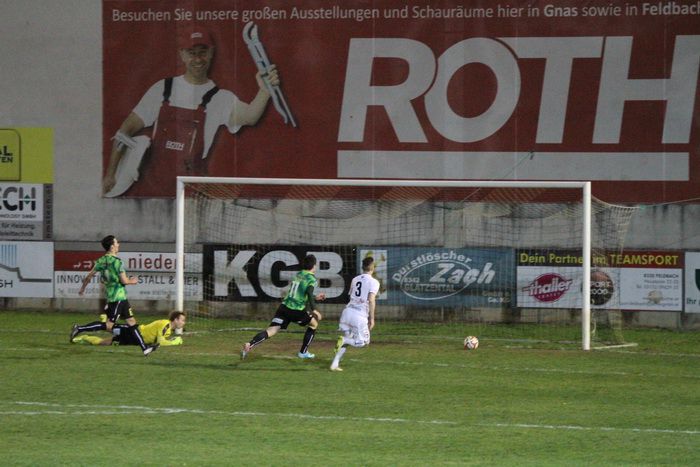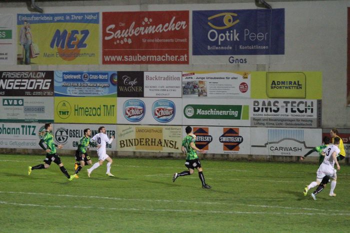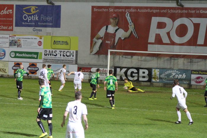 In der Schlussphase warfen die Gnaser alles nach vorne. Ein Klenner-Schuss nach einem Freistoß von Wohlmuth wurde zur Ecke abgefälscht (89.). Einen Geigl-Schuss konnte Goalie Leitner halten (90.) und die Riesenchance zum Ausgleich konnte Daniel Haas nach Hereingabe von Obendrauf nicht verwerten. Alleinstehend, sichtlich überrascht, scheiterte Haas an der Fußabwehr von Leitner (90.).